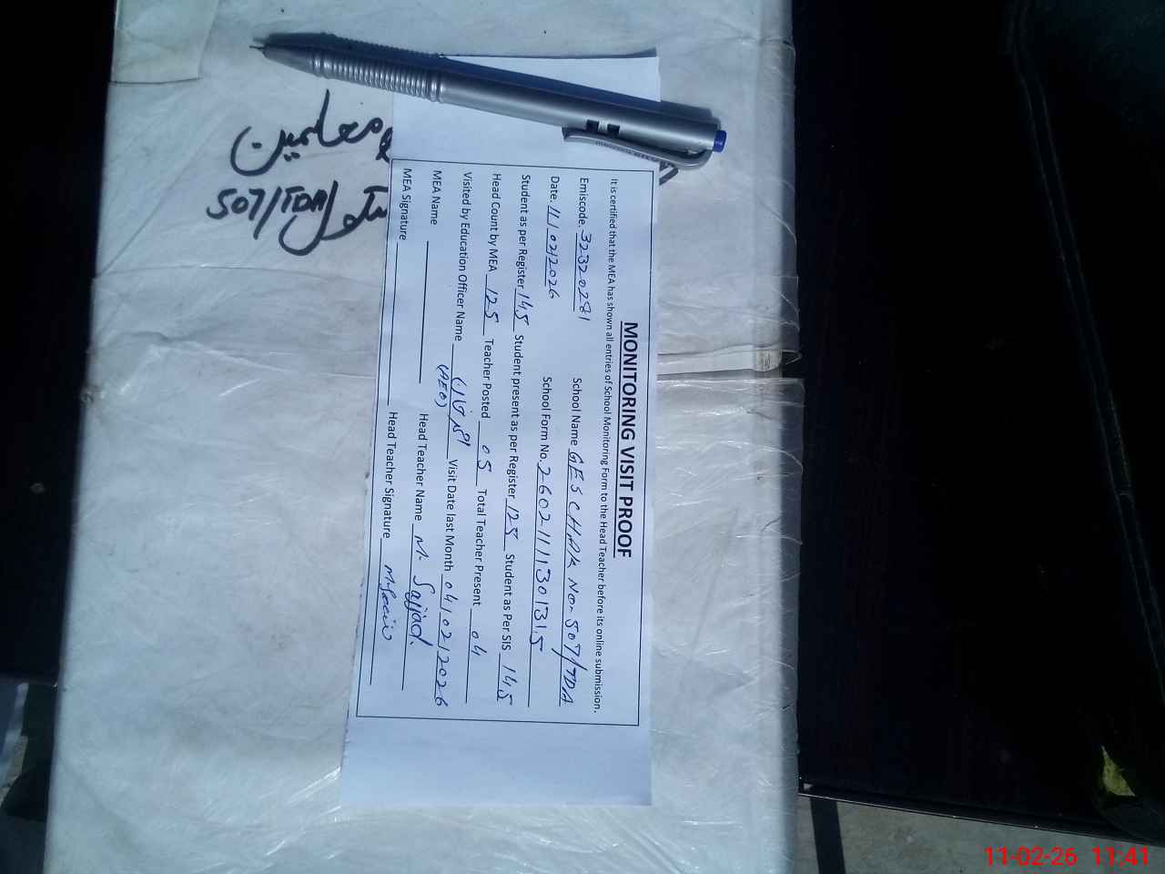 | EMIS Code: 32320281 | Name of School: GES CHAK NO.507 TDA | |||