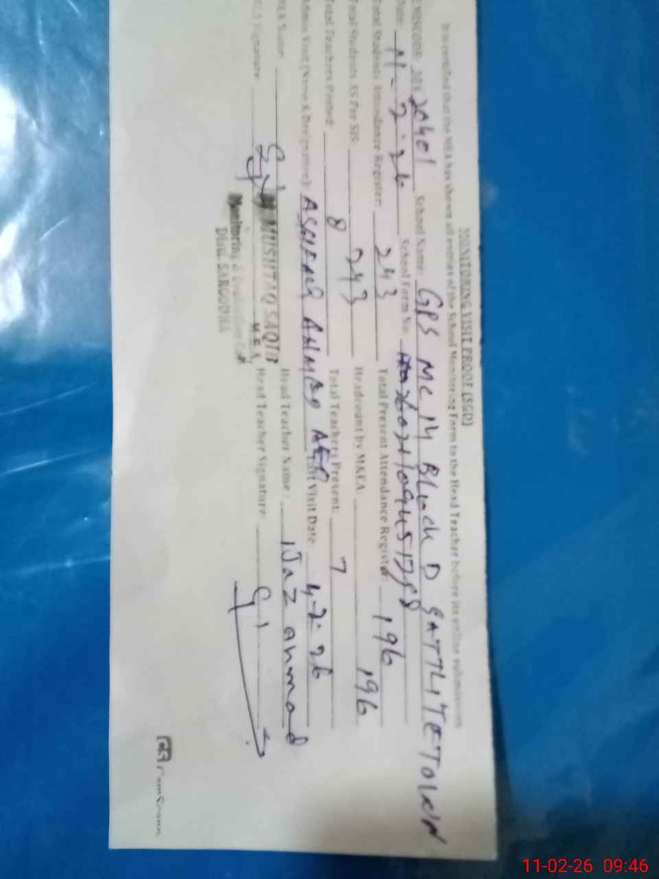 | EMIS Code: 38420401 | Name of School: GPS MC 14 BLOCK D SATELITTE TOWN SARGODHA | |||