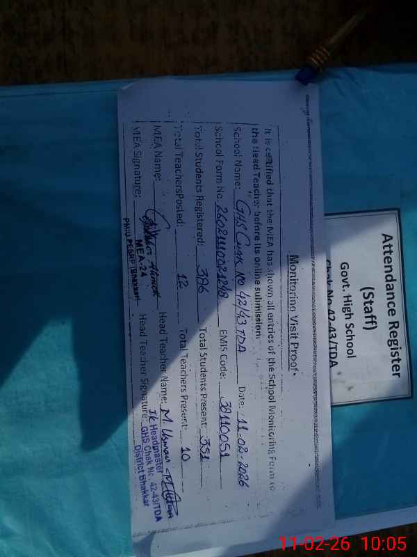 | EMIS Code: 38110051 | Name of School: GHS CHAK NO 42-43 TDA | |||