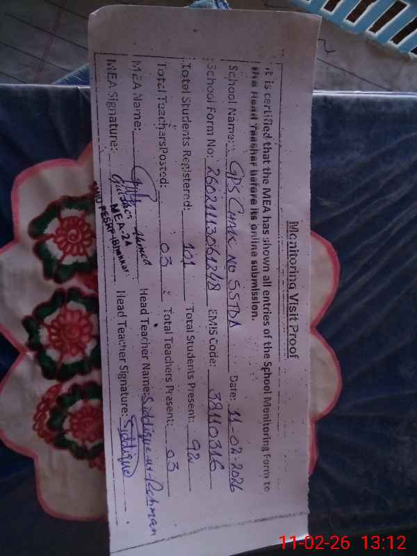 | EMIS Code: 38110316 | Name of School: GPS CHAK NO.55/TDA | |||
