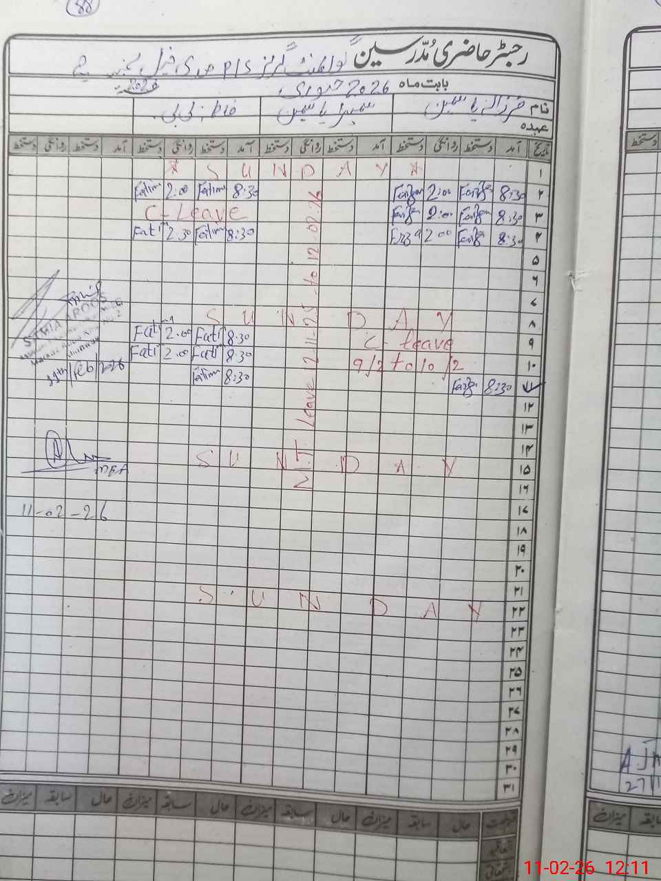 | 38**** | Su**** Ya**** | PST Science/Maths | Regular | 0 | 0 | 0 | 0 | 0 | 0 | 0 | 0 | 0 | Maternity |