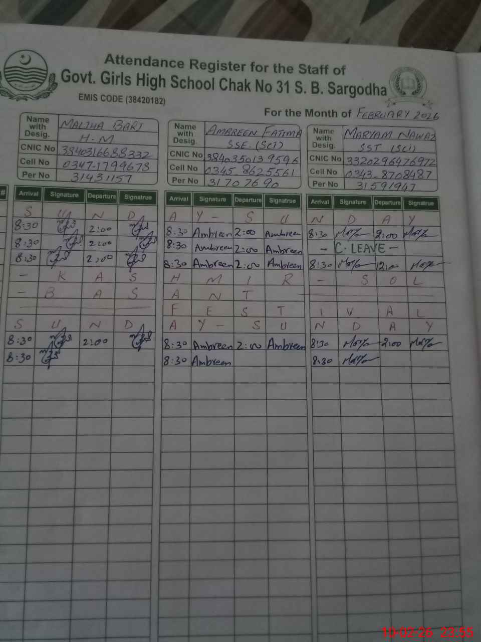 | Name: MA**** BA**** Designation: (School Headmaster's/Headmistress's) SST Phone/Cell Number: 03**** |