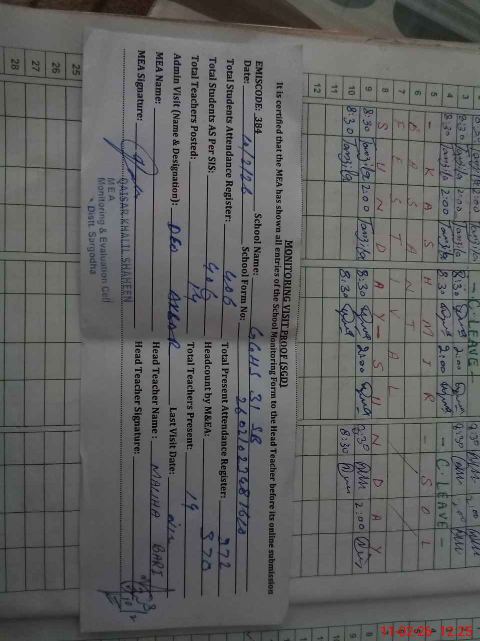 | EMIS Code: 38420182 | Name of School: GGHS CHAK NO.31 SB | |||