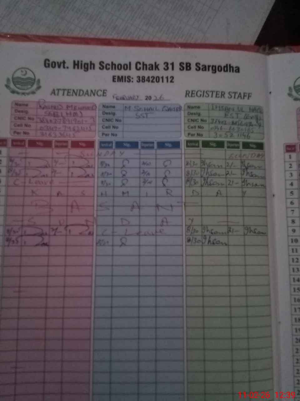 | EMIS Code: 38420112 | Name of School: GHS CHAK NO.31 SB | |||