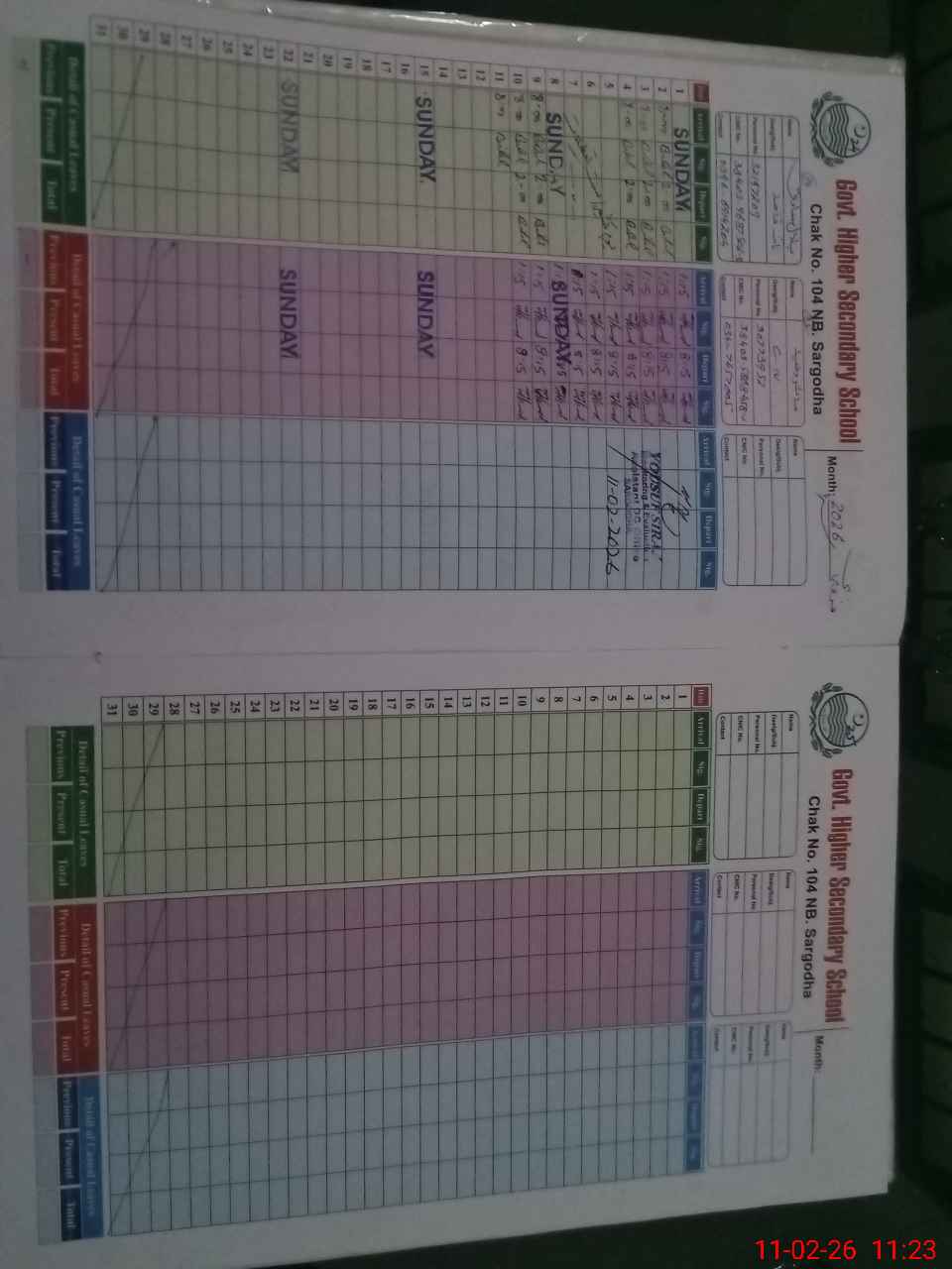 | CNIC | Full Name | Designation | R/C | Absence During Last Calender Month |