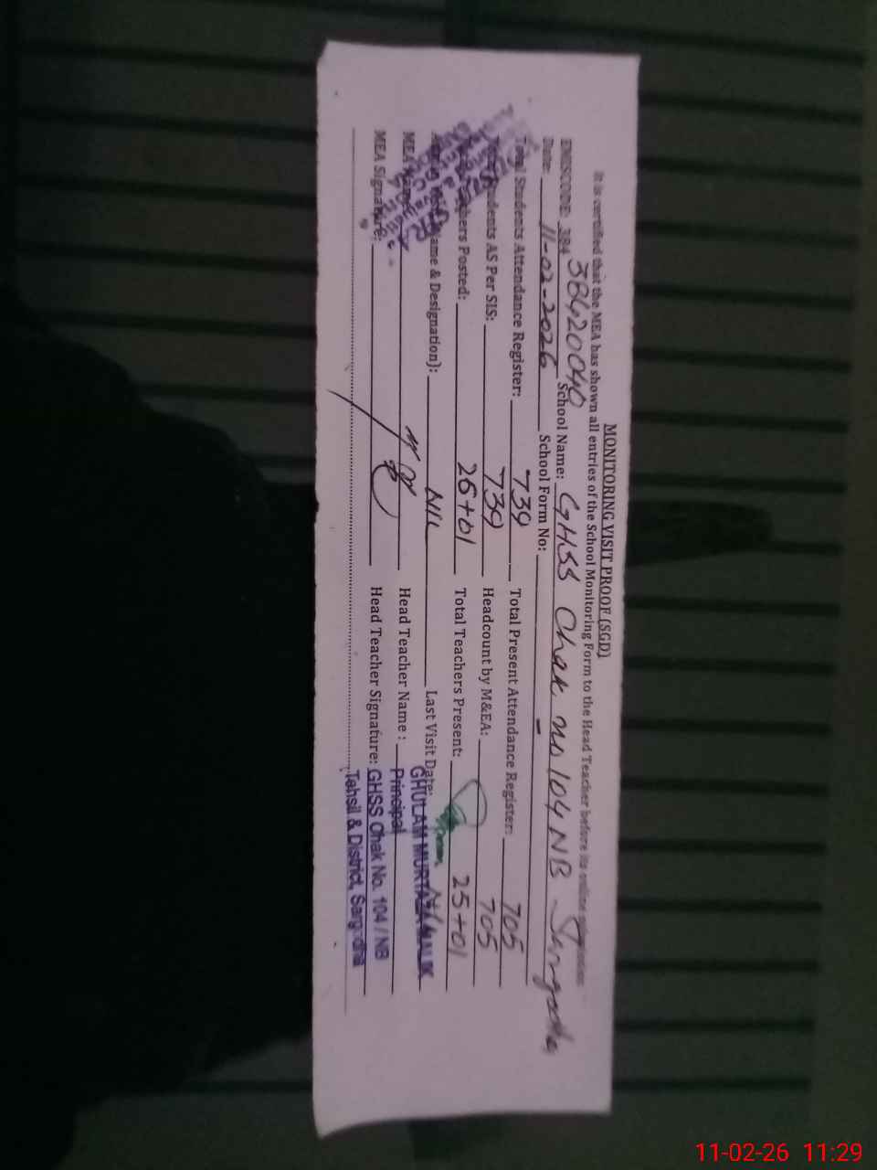 | Attendance Register | Head Teacher | MEA with School | Visit Proof |