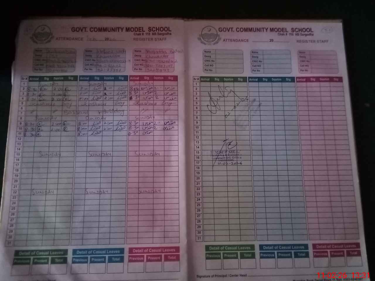 | CNIC | Full Name | Designation | R/C | Absence During Last Calender Month |