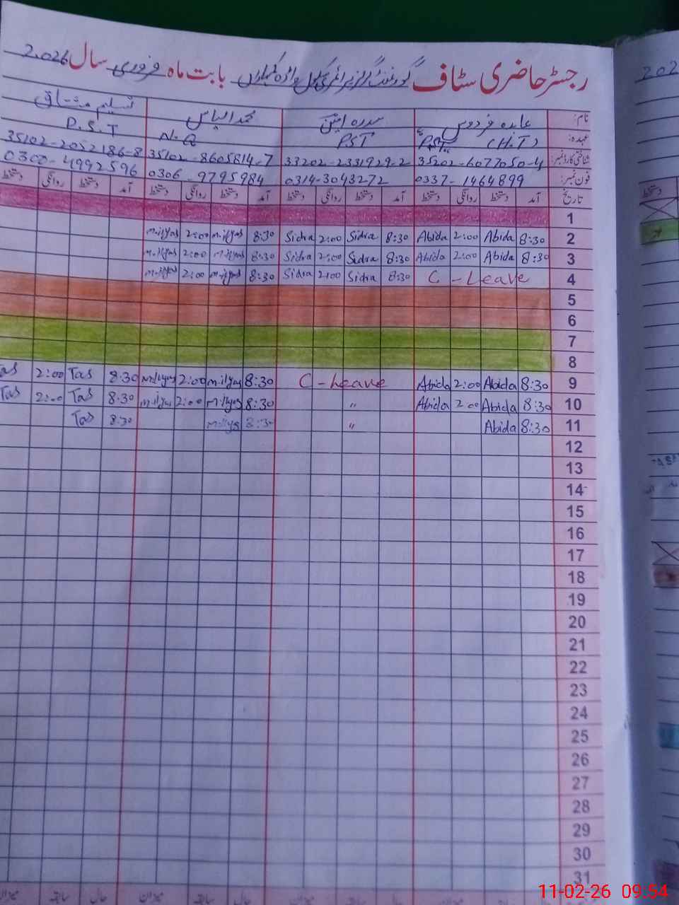 | CNIC | Full Name | Designation | R/C | Absence During Last Calender Month |