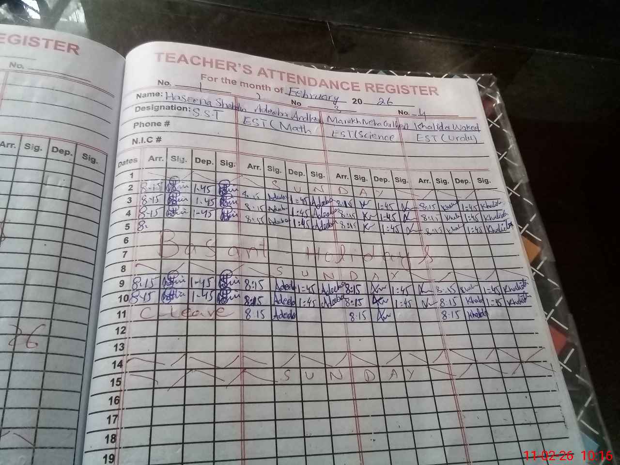 | Name: HA**** SH**** DI**** Designation: (School Headmaster's/Headmistress's) S.S.T.(SC) Phone/Cell Number: 03**** |