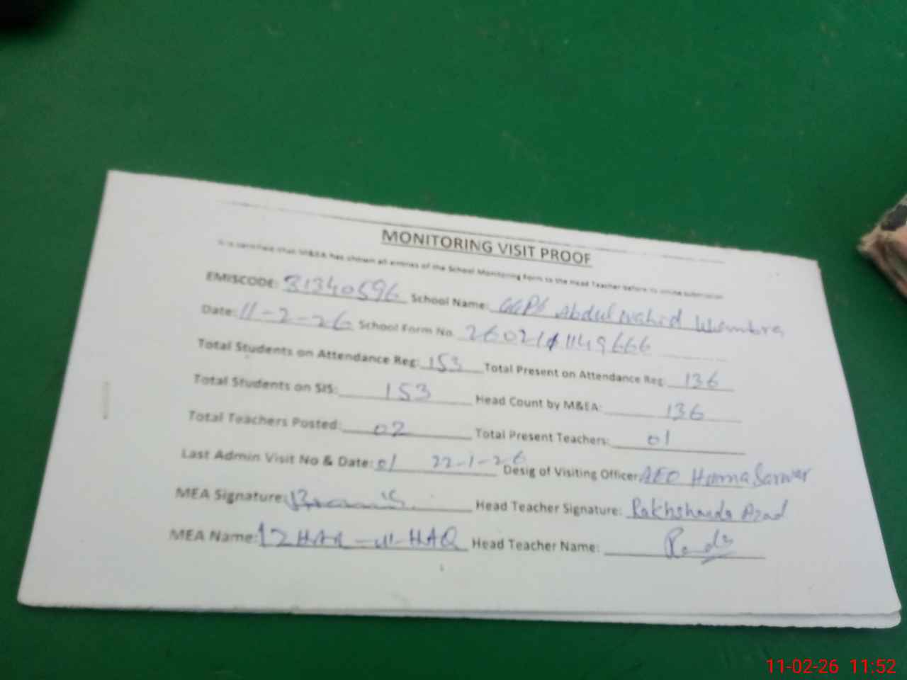 | EMIS Code: 31340596 | Name of School: GGPS ABDUL WAHID KHUMBHRA | |||
