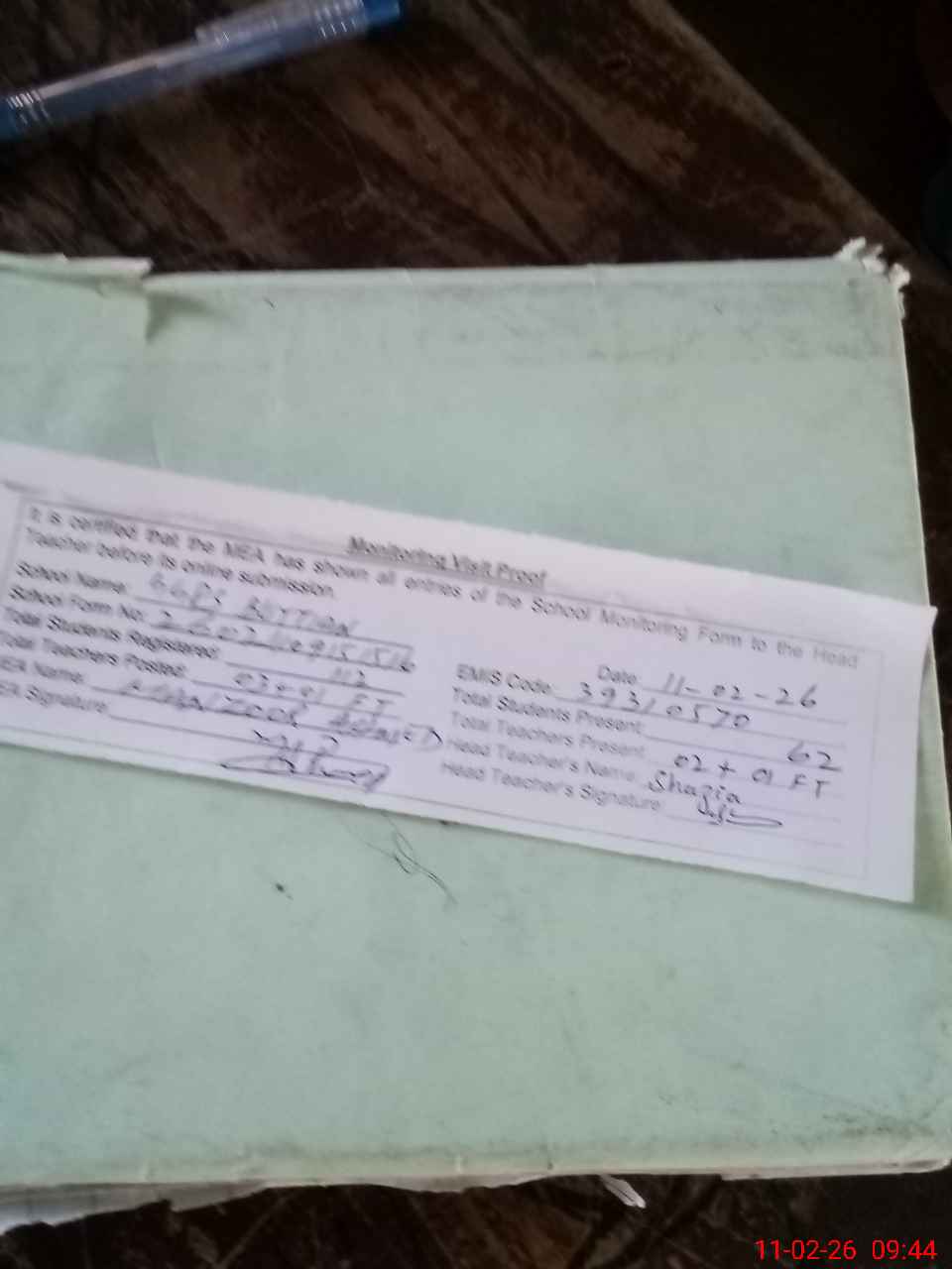 | Certified that this School was Inspected by the Undersigned MEA/DMO Today and the Information Stated Above is as Per Record. | |||||