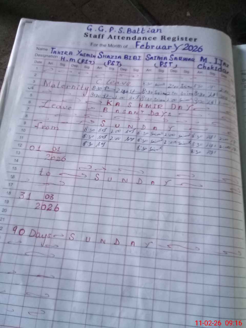 | 35**** | Ta**** Ya**** | PST | Regular | 31 | 0 | 0 | 31 | 0 | 0 | 0 | 0 | 0 | Maternity |