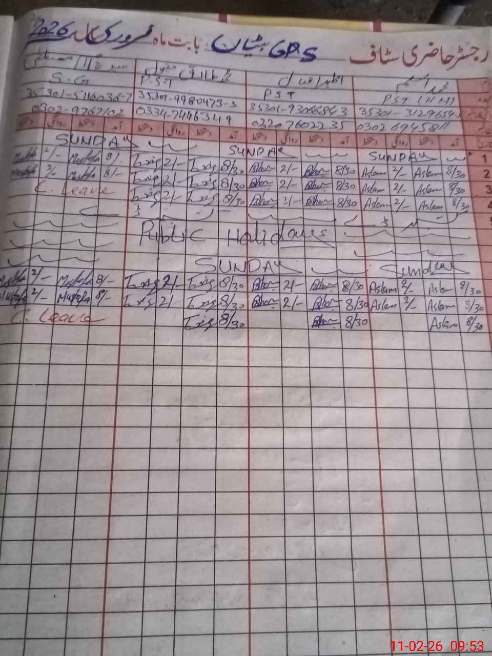 | Name: MU**** AS**** Designation: (School Headmaster's/Headmistress's) PST Phone/Cell Number: 03**** |