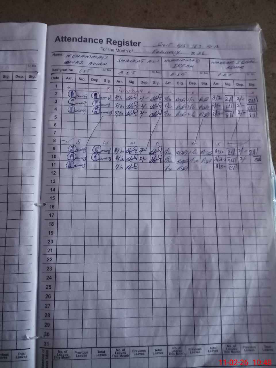 | Leave | Duty | Absent | Maternity | Medical | Ex- Pak |