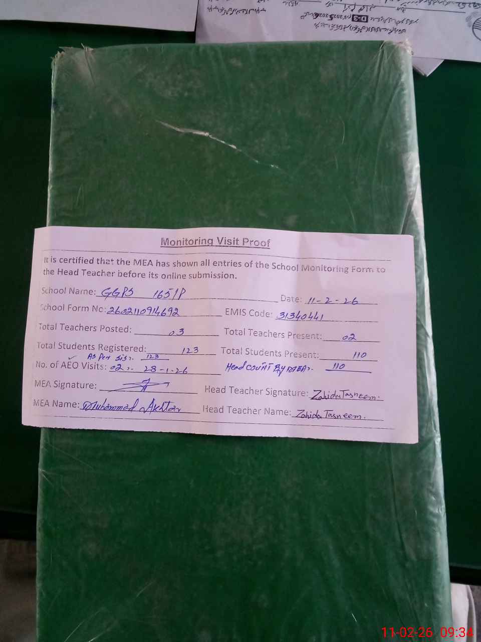 | Certified that this School was Inspected by the Undersigned MEA/DMO Today and the Information Stated Above is as Per Record. | |||||