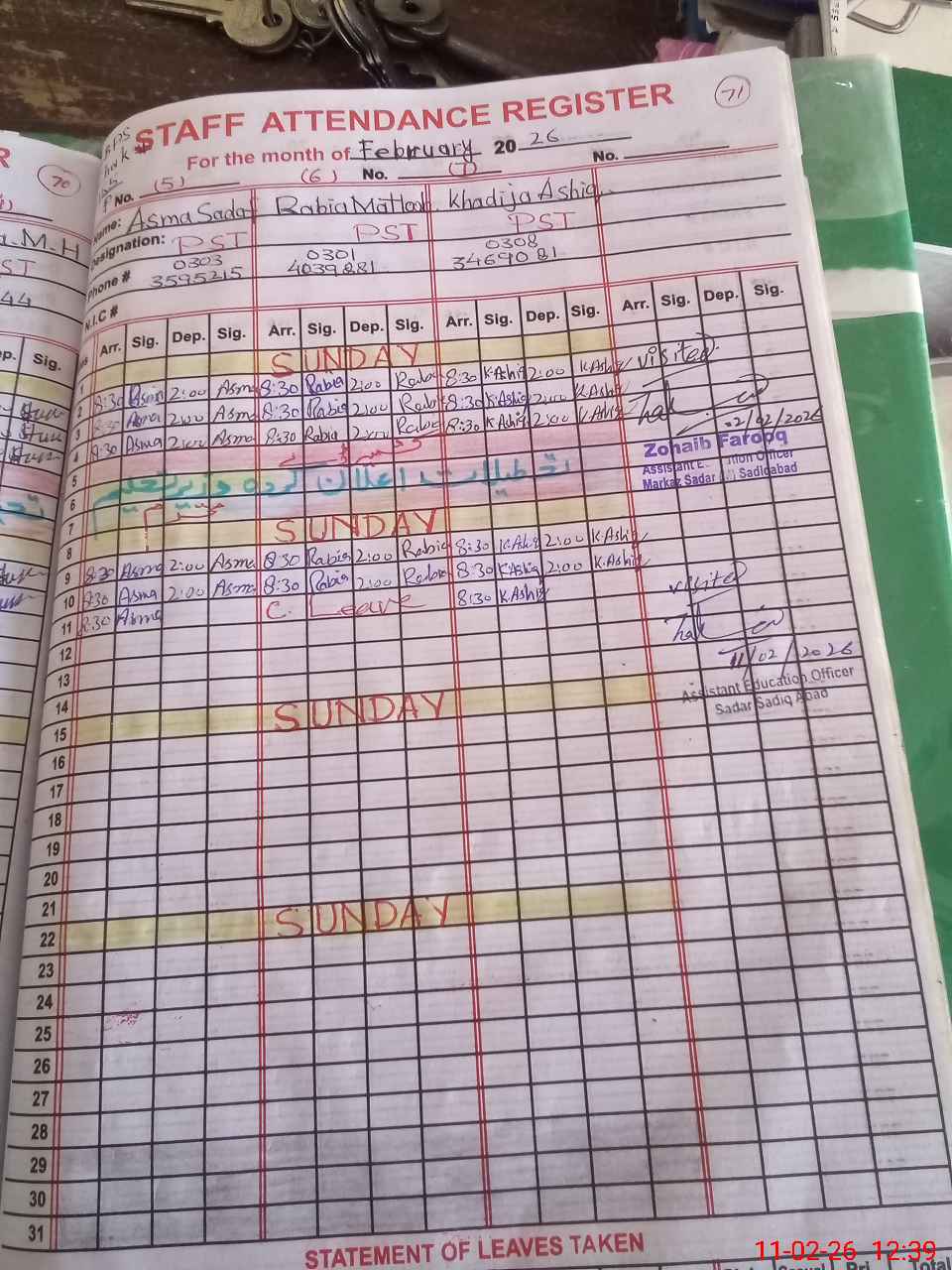 | Name: Qa**** UZa**** Designation: (School Headmaster's/Headmistress's) PST/PTC/JV Phone/Cell Number: 03**** |