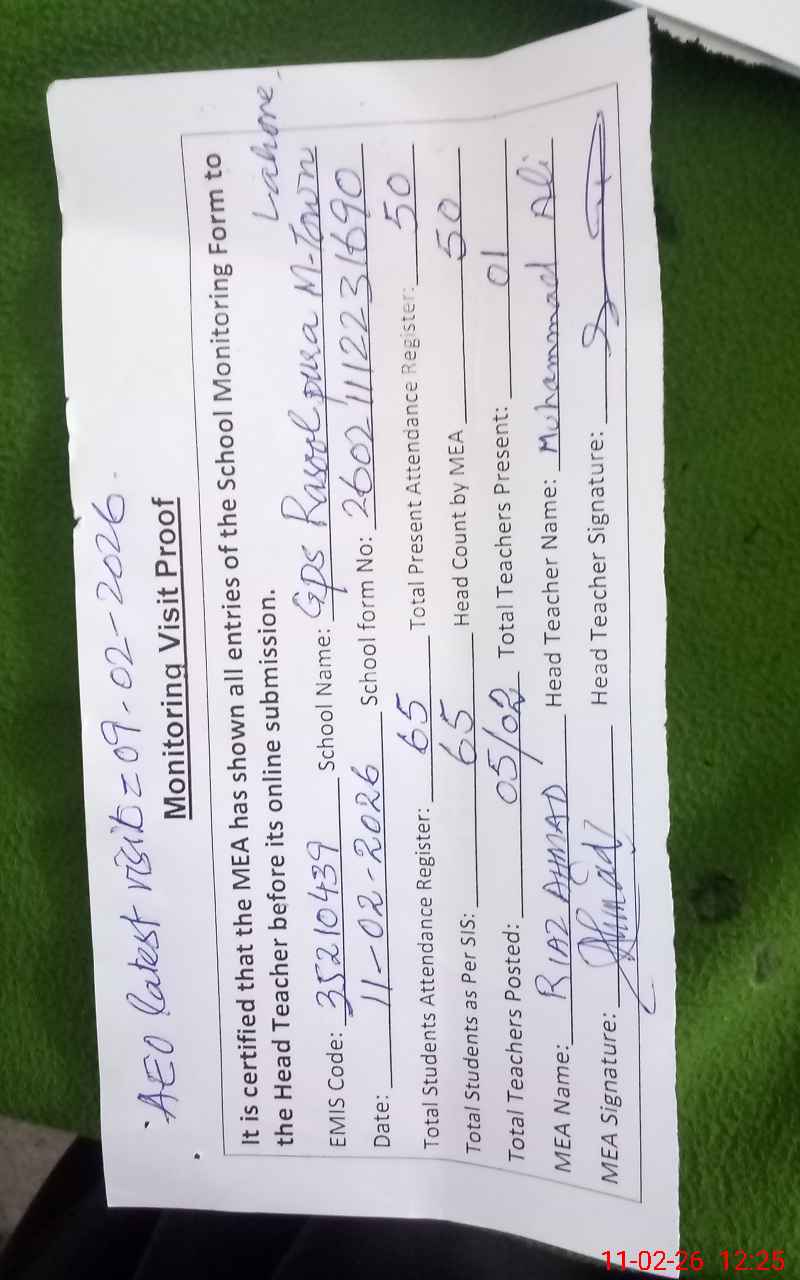 | EMIS Code: 35210439 | Name of School: GPS RASOOL PURA | |||