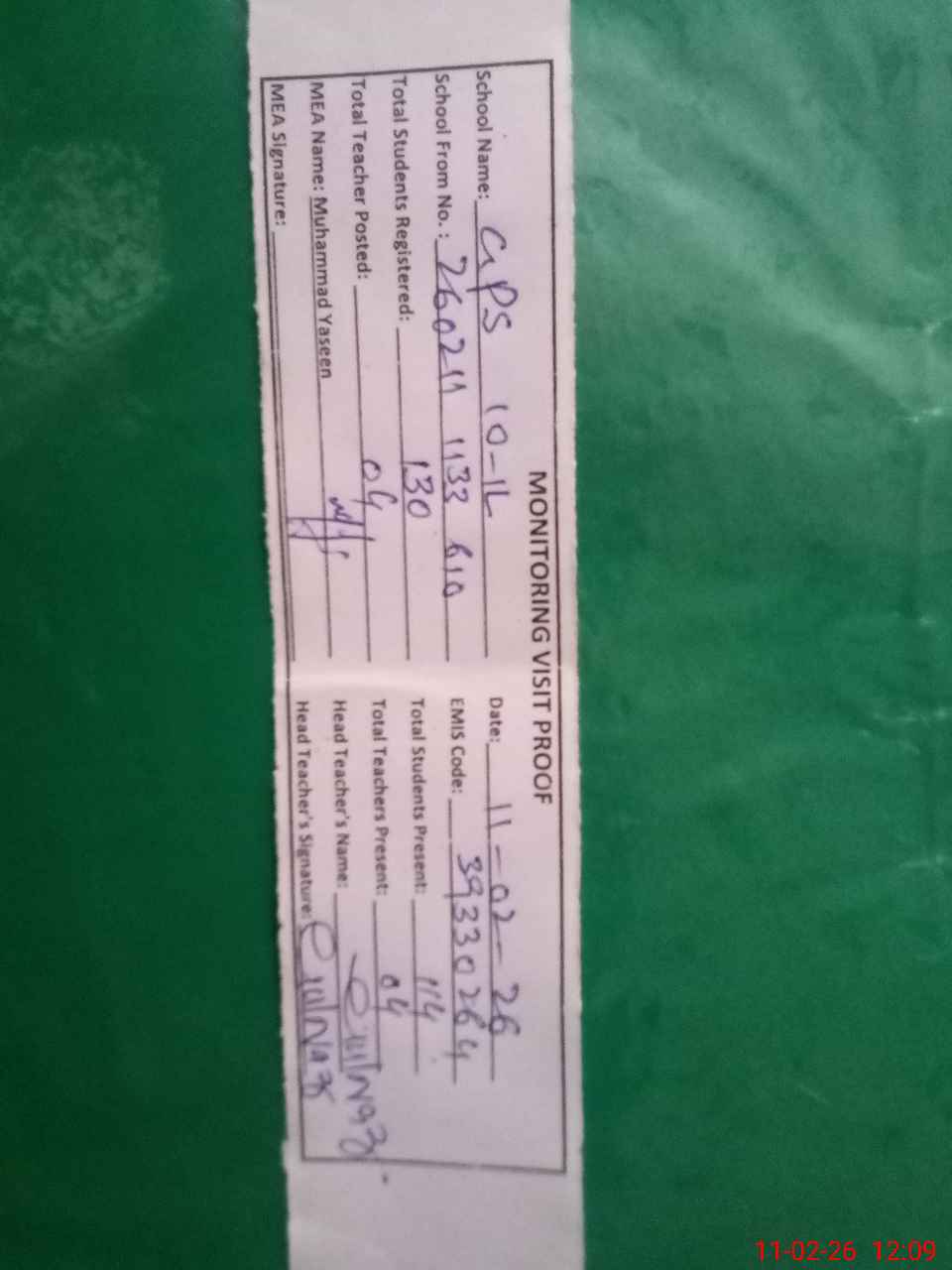 | EMIS Code: 39330264 | Name of School: GPS CHAK NO.10/1-L | |||
