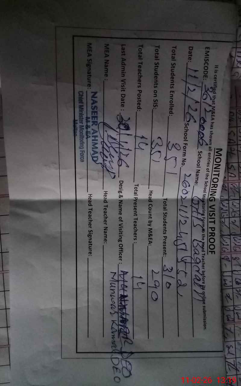 | EMIS Code: 36120006 | Name of School: GHS BAGRAIN V/P BAGRIAN TEH. SHUJABAD | |||