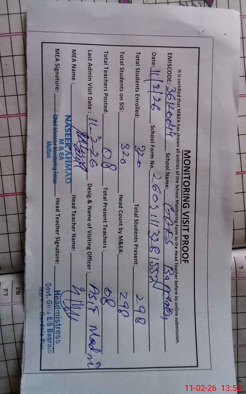 | EMIS Code: 36120044 | Name of School: GGES BAGRAIN SHUJABAD | |||