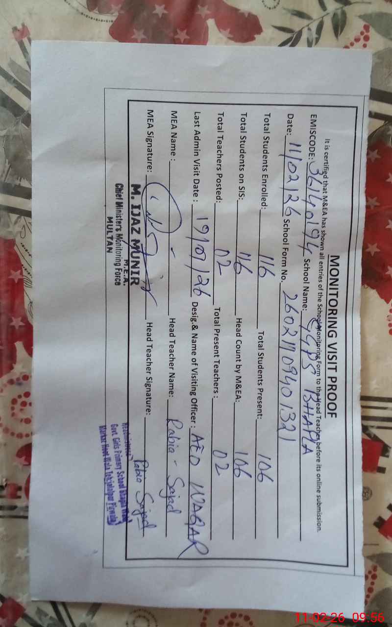 | EMIS Code: 36140194 | Name of School: GGPS BHAPLA WALA | |||