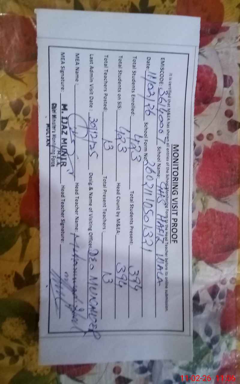 | EMIS Code: 36140007 | Name of School: GHS HAFIZ WALA JALALPUR PIRWALA | |||