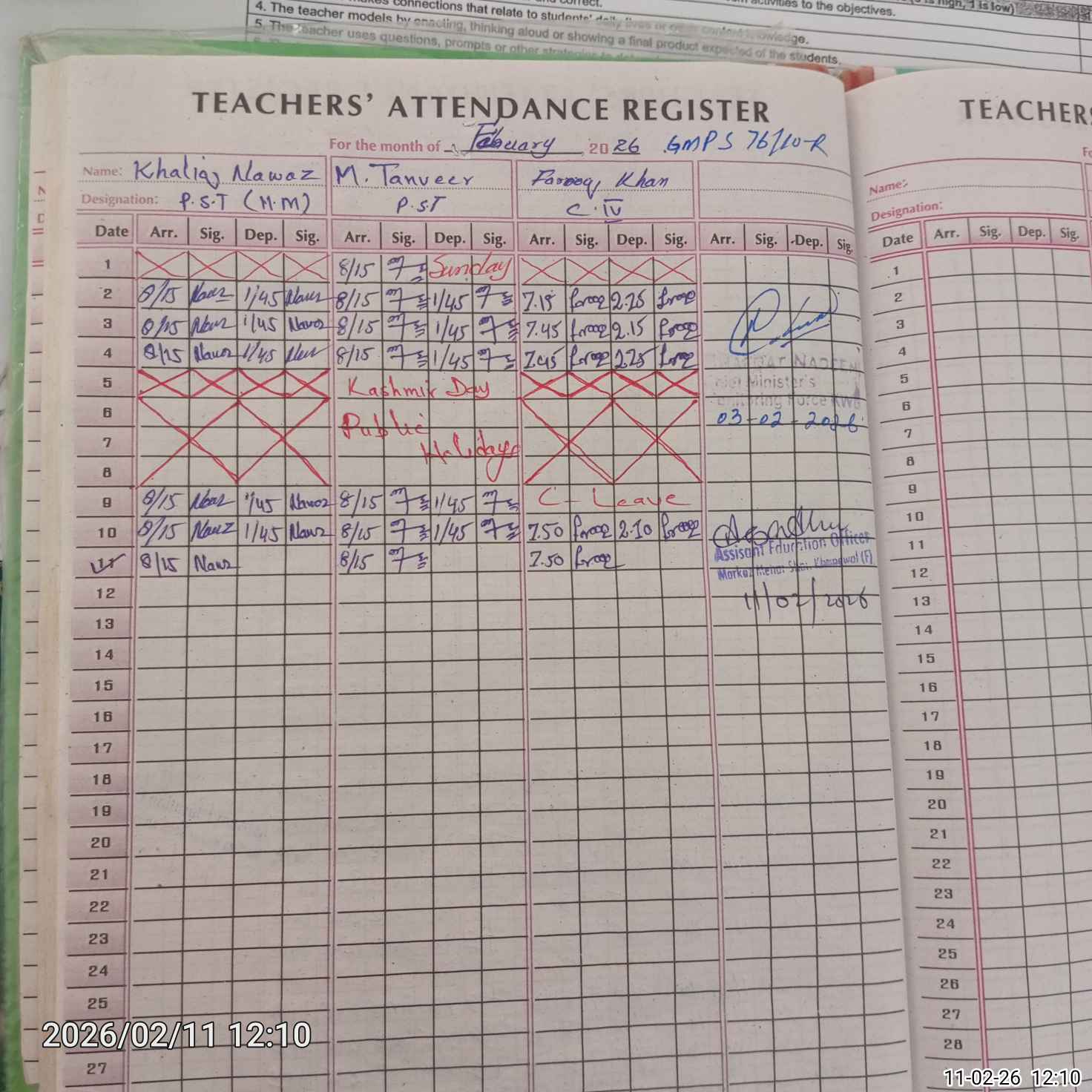 | Name: KH**** NA**** Designation: (School Headmaster's/Headmistress's) PST Phone/Cell Number: 03**** |