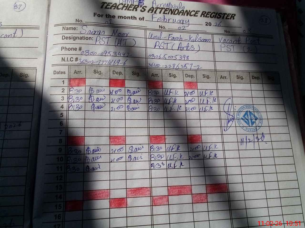 | Name: SA**** NO**** Designation: (School Headmaster's/Headmistress's) PST Phone/Cell Number: 03**** |