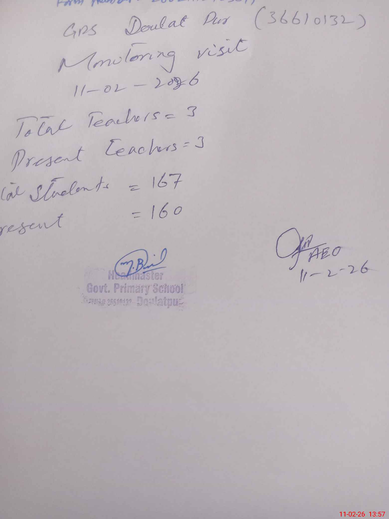 | Attendance Register | Head Teacher | MEA with School | Visit Proof |