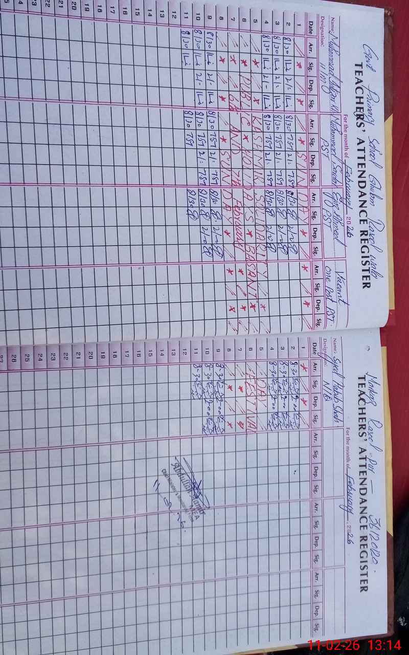 | Remarks (Use Separate Page if Required): Roznamcha of students not maintained Attendence Register of students not maintained NSB not maintained and not provided | |||||