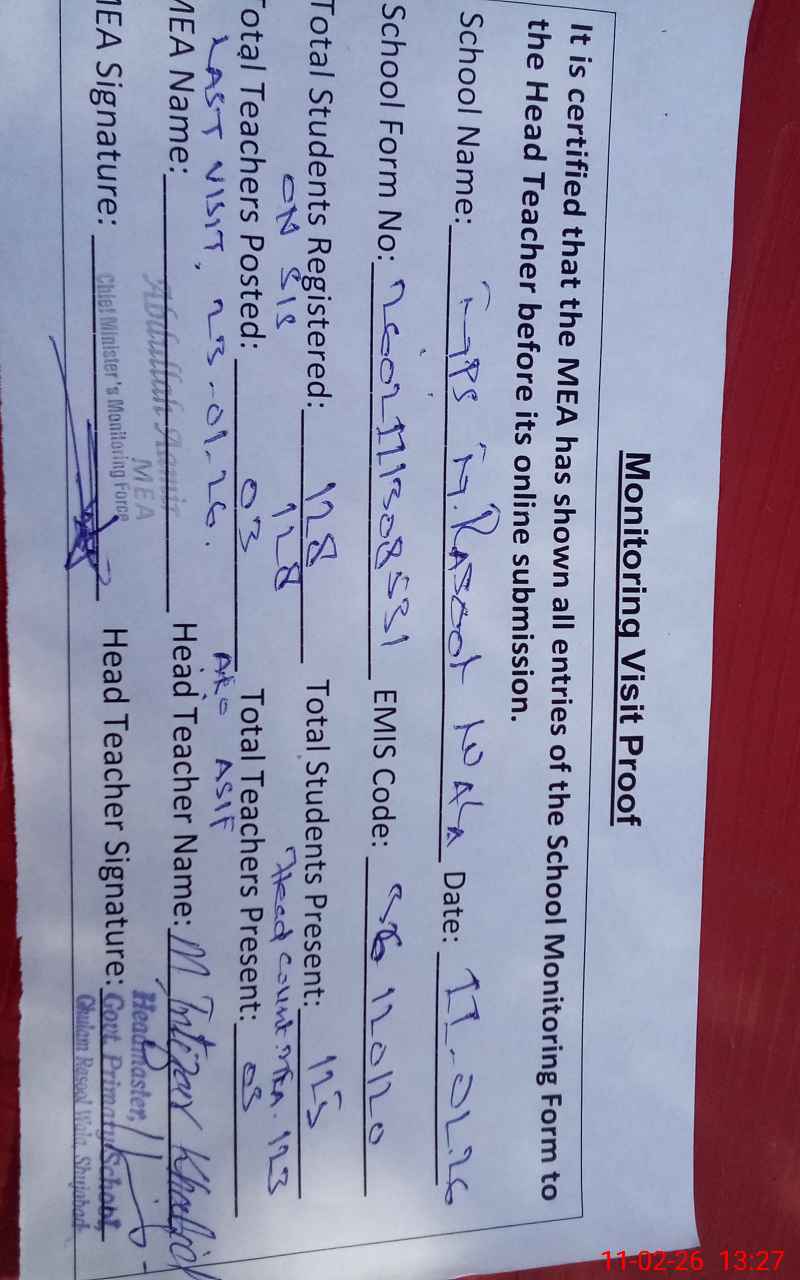 | Attendance Register | Head Teacher | MEA with School | Visit Proof |