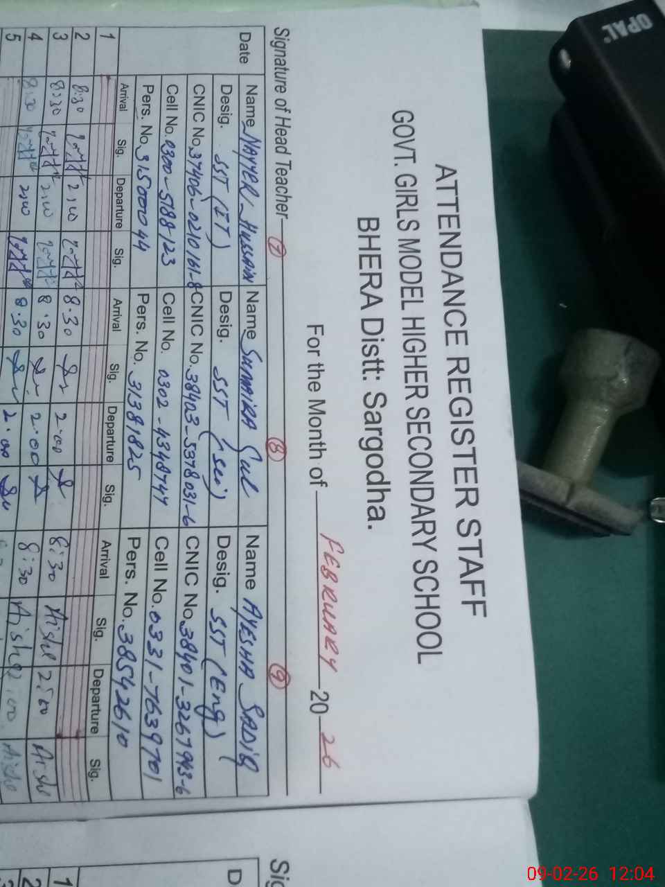 | District: SARGODHA | Tehsil: BHERA | Markaz: SECONDARY-WING | Level: H.Sec. | |