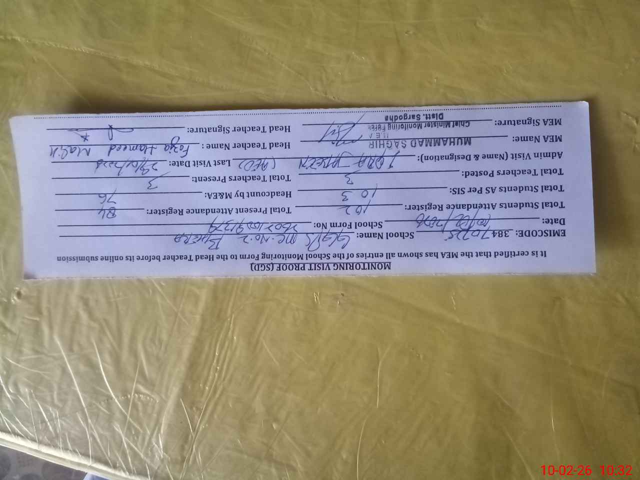 | Certified that this School was Inspected by the Undersigned MEA/DMO Today and the Information Stated Above is as Per Record. | |||||