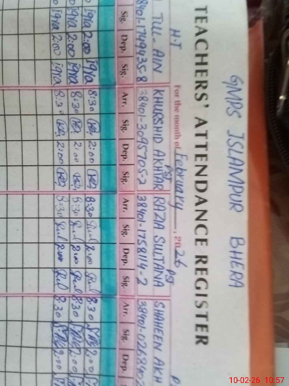 | Name: IQ**** TU**** AI**** Designation: (School Headmaster's/Headmistress's) PST Phone/Cell Number: 03**** |