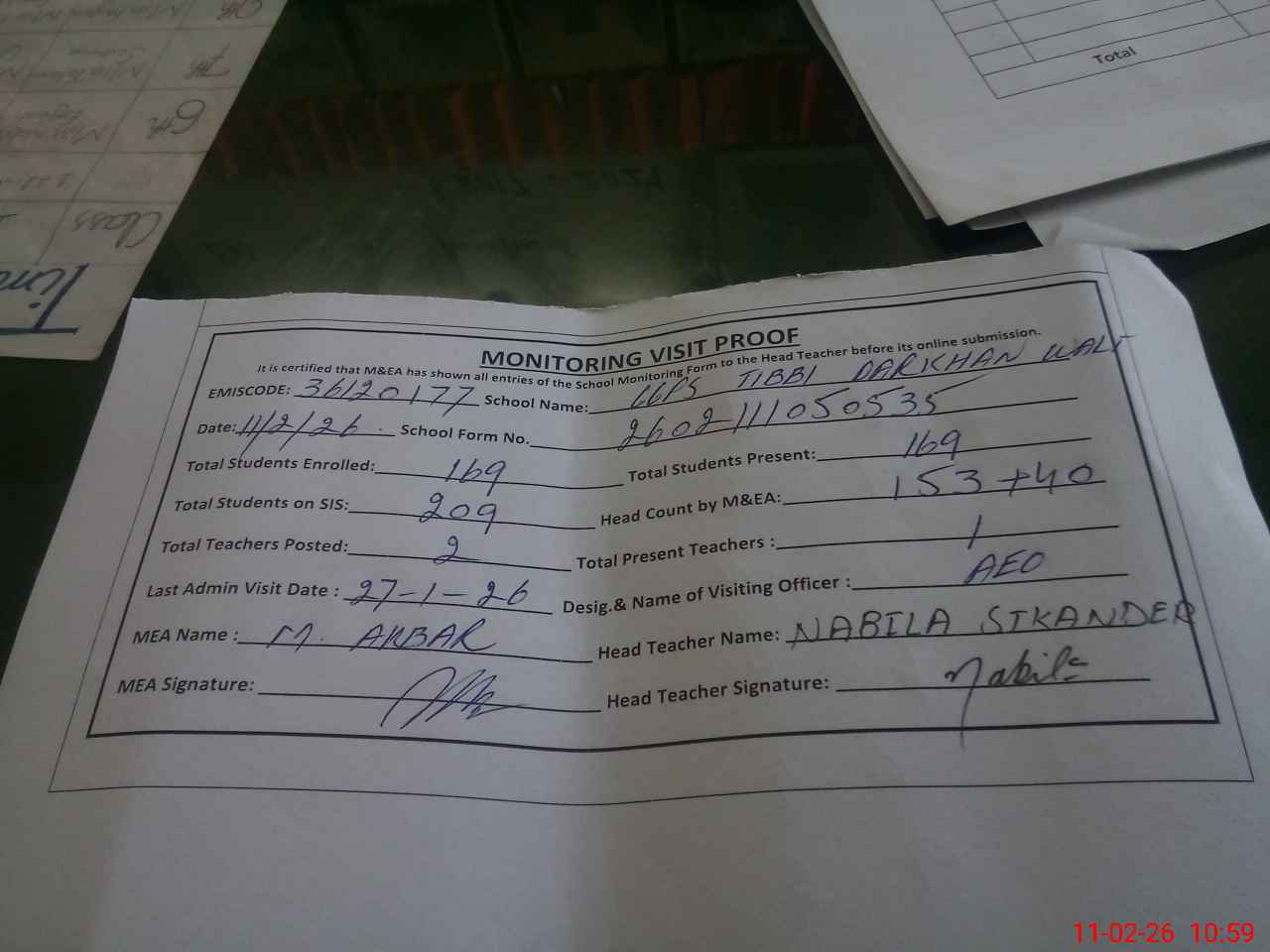 | Certified that this School was Inspected by the Undersigned MEA/DMO Today and the Information Stated Above is as Per Record. | |||||