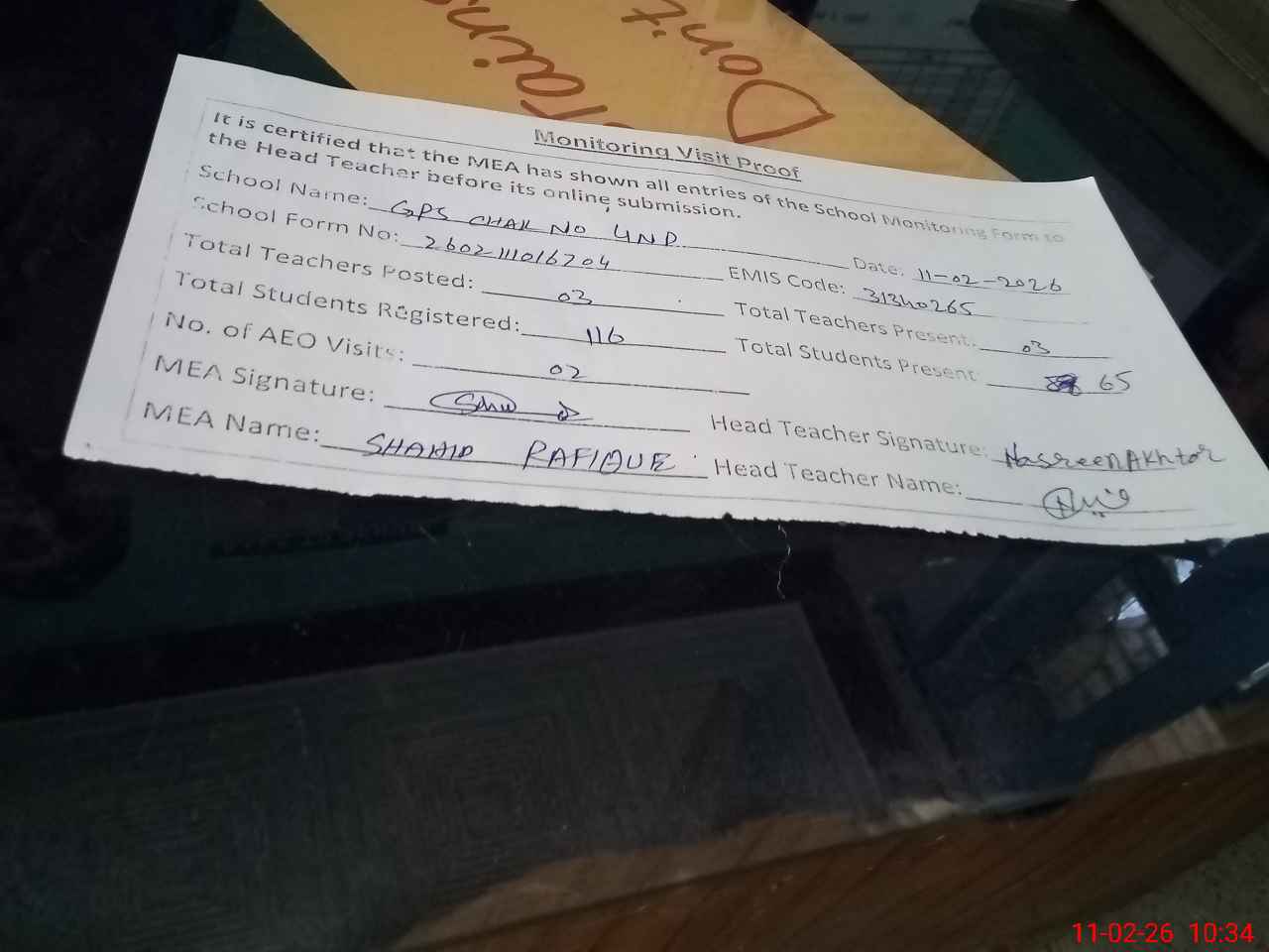 | EMIS Code: 31340265 | Name of School: GPS CHAK NO. 4/NP | |||
