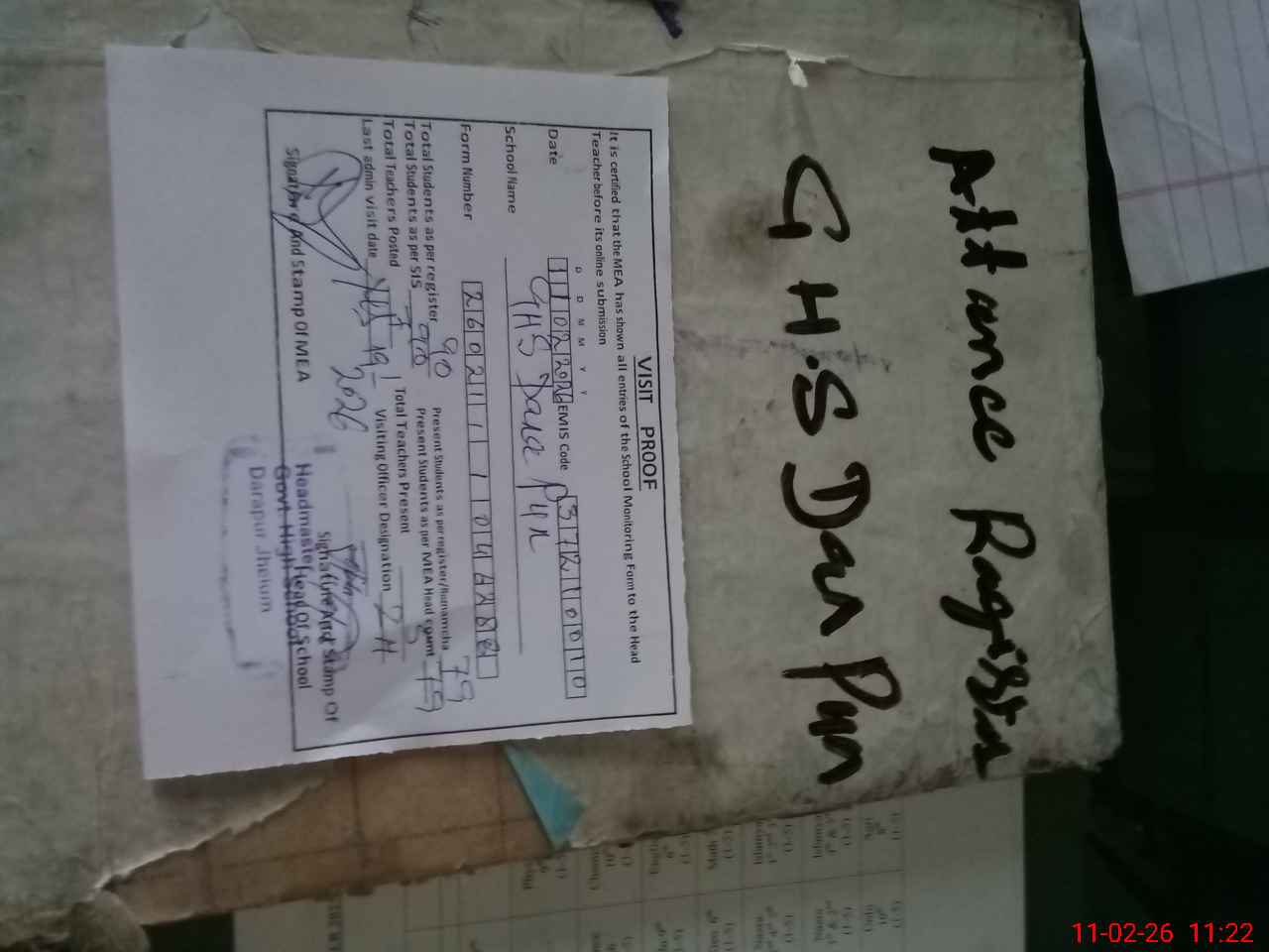 | Attendance Register | Head Teacher | MEA with School | Visit Proof |
