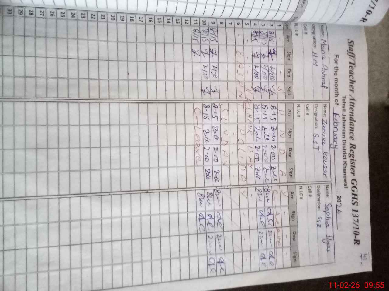 | 36**** | Za**** Ko**** | SST Science | Regular | 0 | 0 | 0 | 0 | 0 | 0 | 0 | 0 | 0 | Casual |