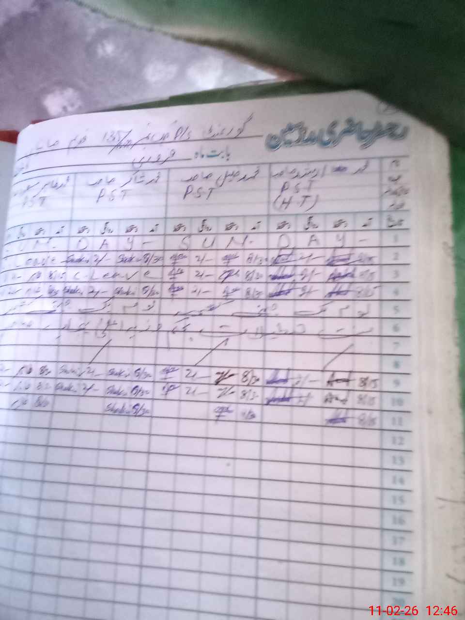 | Leave | Duty | Absent | Maternity | Medical | Ex- Pak |