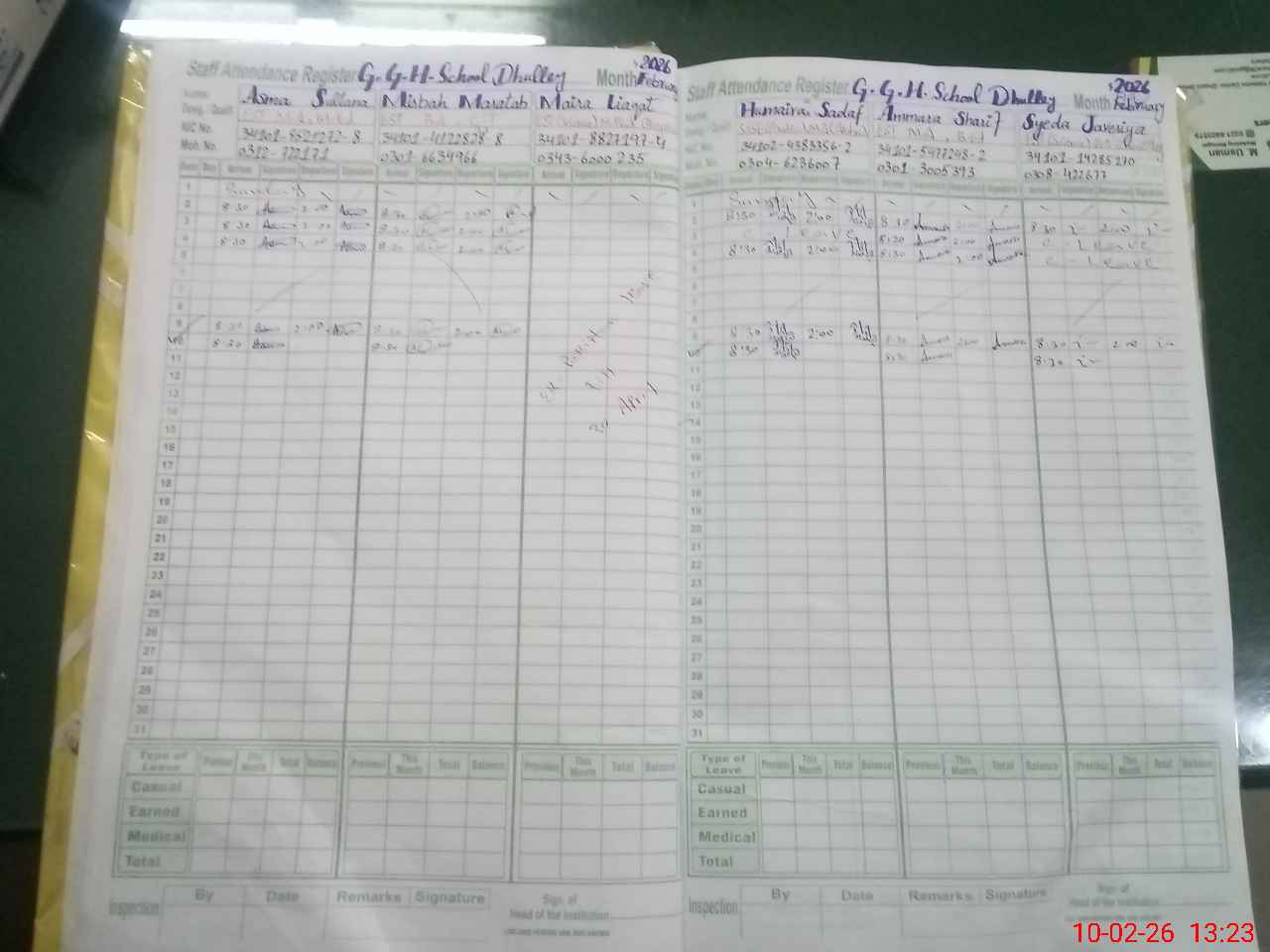 | CNIC | Full Name | Designation | R/C | Absence During Last Calender Month |