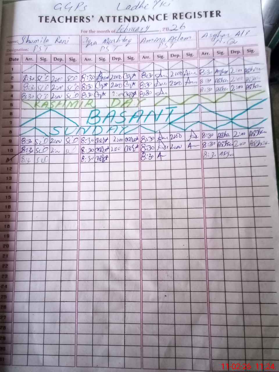 | Name: SH**** RA**** Designation: (School Headmaster's/Headmistress's) PST Phone/Cell Number: 03**** |