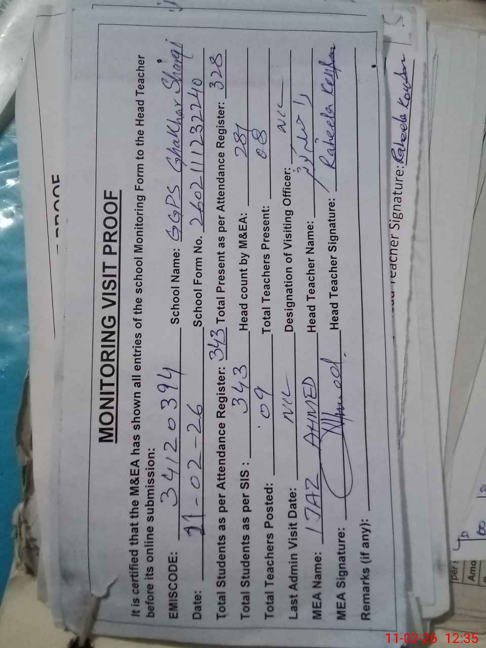 | EMIS Code: 34120394 | Name of School: GGPS GHAKHAR SHARQI | |||