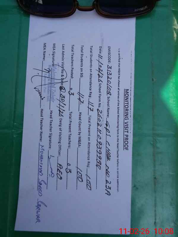 | EMIS Code: 31320108 | Name of School: GPS CHAK 23 A | |||