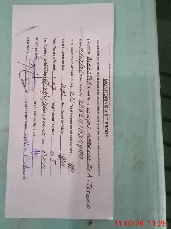 | Attendance Register | Head Teacher | MEA with School | Visit Proof |