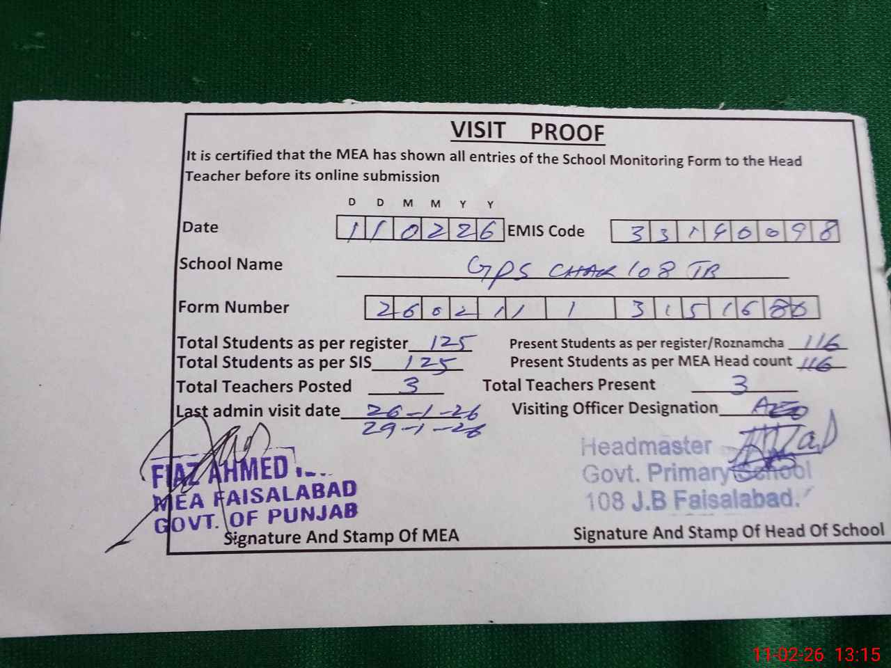 | EMIS Code: 33140098 | Name of School: GPS CHAK 108 JB TALUANDI | |||