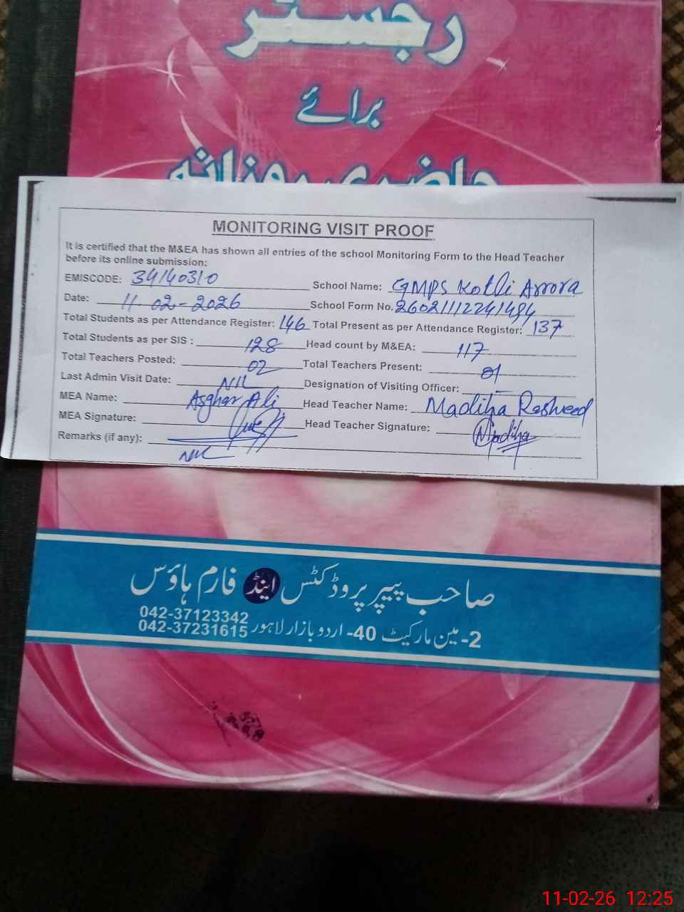 | EMIS Code: 34140310 | Name of School: GMPS KOTLI ARRORA | |||