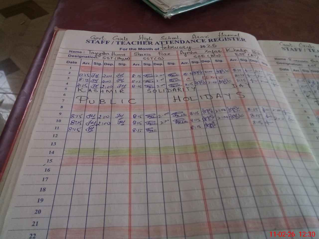 | CNIC | Full Name | Designation | R/C | Absence During Last Calender Month |
