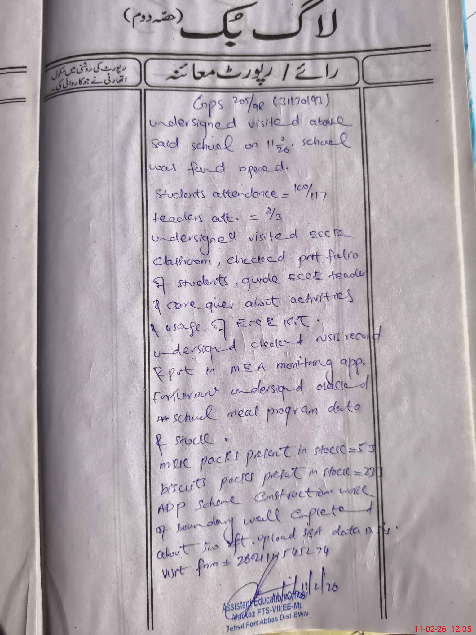 | Remarks (Use Separate Page if Required): visited the school on 11.2.26 and record the observations | |||||