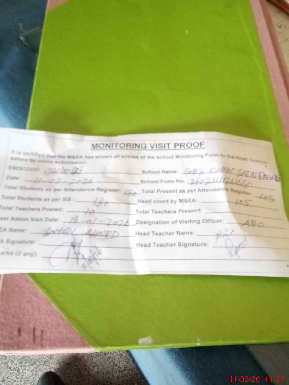 | Certified that this School was Inspected by the Undersigned MEA/DMO Today and the Information Stated Above is as Per Record. | |||||