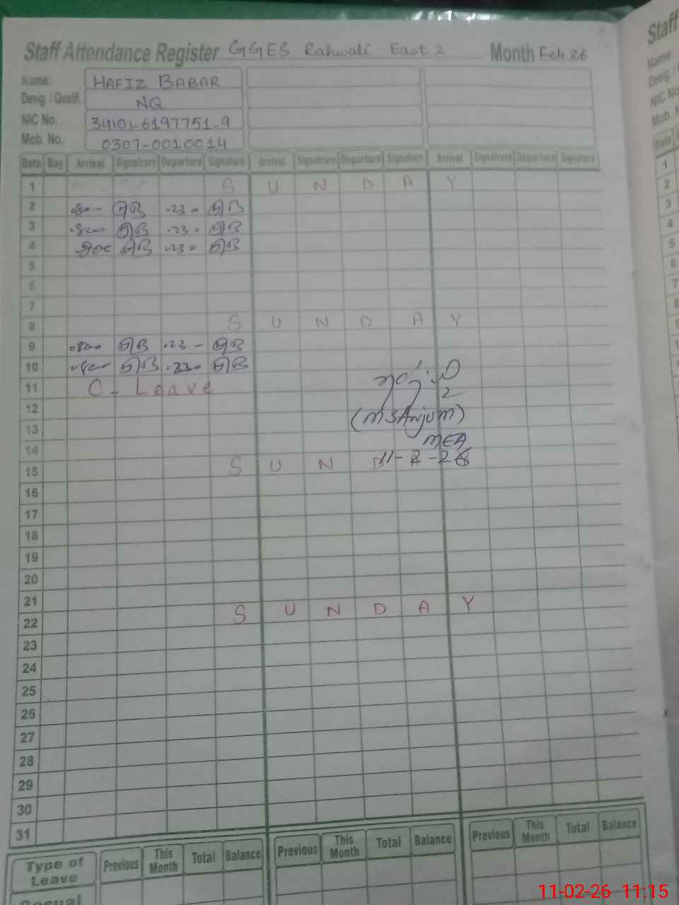 | 34**** | HA**** BA**** | NAIB QASID | Regular | 0 | 0 | 0 | 0 | 0 | 0 | 0 | 0 | 0 | Casual |